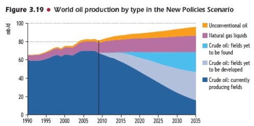 Tämä on kyllä paras juttu IEA:n hienossa kuvassa: ”Crude oil – Fields yet to be found. Raaka-öljy, jota ei vielä ole löydetty.” Nämä nerot osaavat määritellä senkin määrän! Uskomatonta, että tuollainen menee läpi. Mutta pakkohan kuvioon on jotain mätkäistä, ettei öljyn tuotanto vaan mitenkään näyttäisi kääntyvän laskuun…