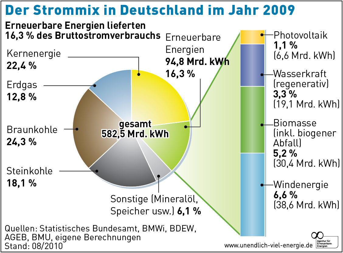 Edit: alla vielä kuvaaja saksan energiantuotannosta, jossa yli puolet tehdään fossiilisilla (Erdgas, Braunkohle ja Steinkohle). Siitä käy myös ilmi paljon hurrattu aurinkovoiman osuus, joka on 1,1 % kokonaisuudesta.