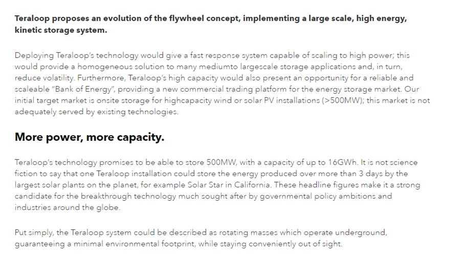 Startup nimeltä Teraloop on esittänyt varsin ällistyttäviä ajatuksia. Uusiutuvien energialähteiden suurin ongelma on niiden ajoittaisuus: energiaa on pystyttävä varastoimaan niiksi ajoiksi, kun ei tuule tai aurinko ei paista. Tähän mennessä ei kerta kaikkiaan ole ollut tekniikoita, joilla pystyttäisiin varastoimaan gigawattitunneittain energiaa moneksi päiväksi kustannustehokkaaseen hintaan. Teraloop väittää löytäneensä ratkaisun, liikuttamalla suuria massoja renkaan muotoisella radalla maan alla.