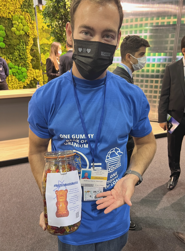 And it was not just bananas. Remember the giant gummy bear from earlier? We also has smaller gummy bears, a full jar of them. Did you know that a gummy bear -sized uranium pellet contains as much energy as a ton of coal? Well, now you do, and so does many a visitor to the COP I guess.